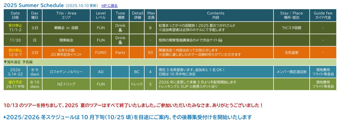 ▶お申込みの前に!(メンバー以外の方、プライベートはこちらをご確認ください)▶ガイドトリップのレベルについて