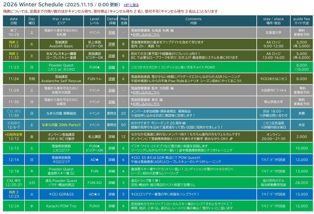 ガイドスケジュール2026 winter
